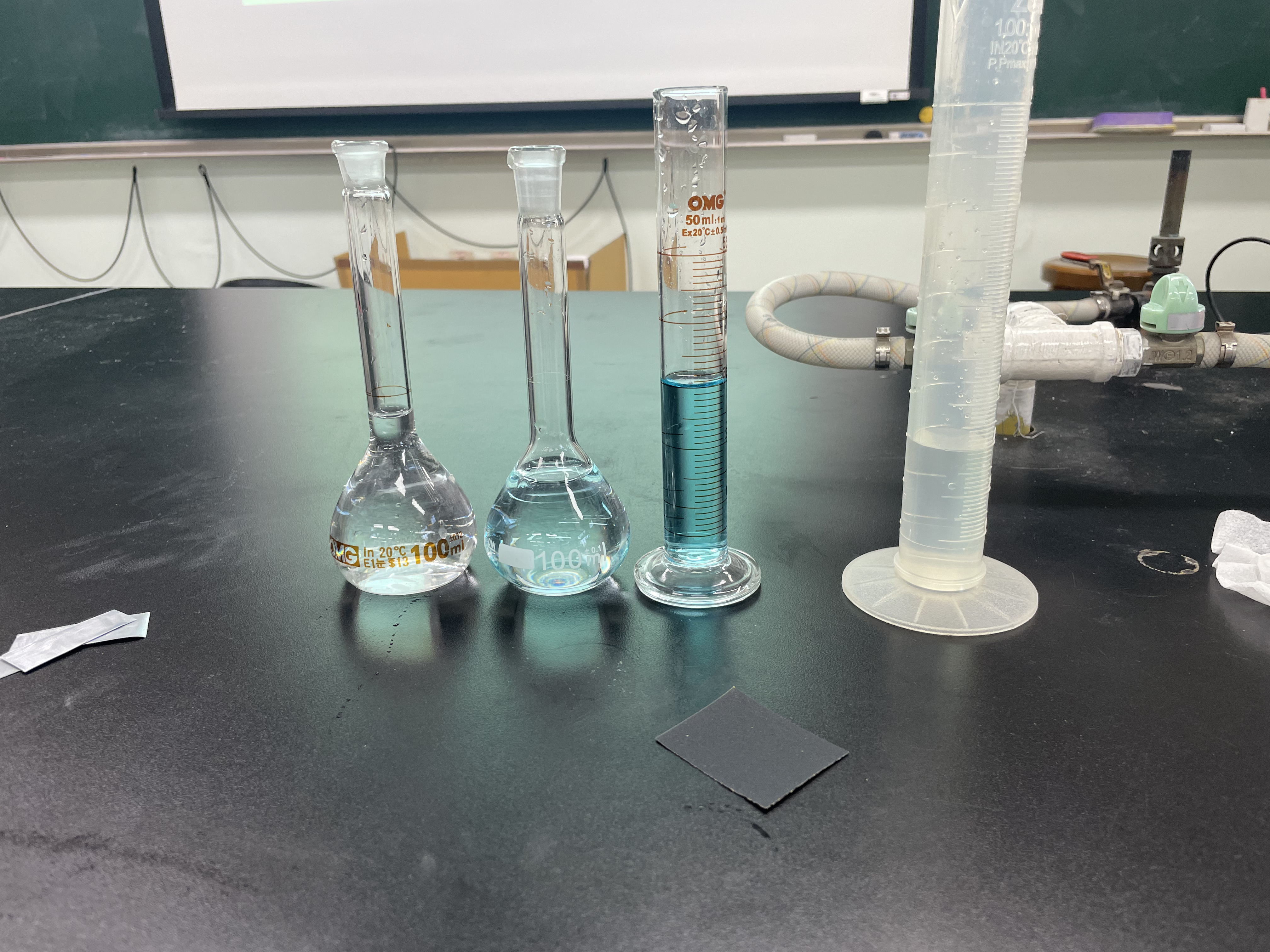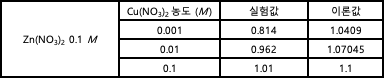 2) 후드에 있는 Zn(NO3)2 1 M Cu(NO3)2 1 M 용액을 사용하여, Zn(NO3)2 0.1 M 용액과 Cu(NO3)2 0.1 M 용액을 각각 100 mL 제조한다.