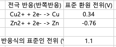 - 3) 표준 환원 전위, 전지전위 계산