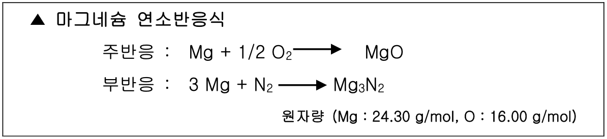 마그네슘의 연소 반응을 통하여 결합한 산소의 원자량을 구해낸다.