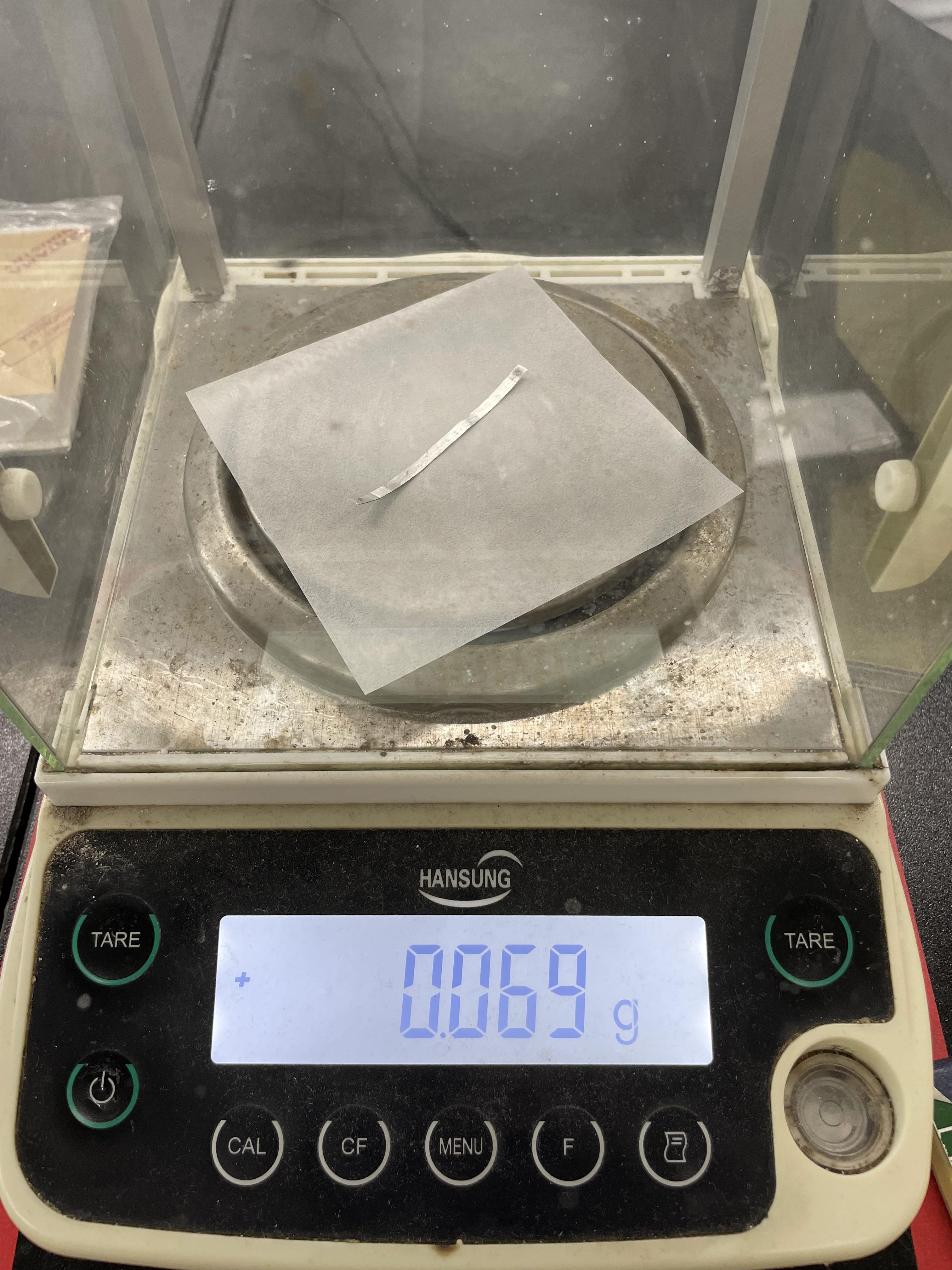 2) 마그네슘 리본 표면을 사포로 은색이 날 때까지 문지른 후 휴지로 닦는다. 그리고, 질량을 측정한다.