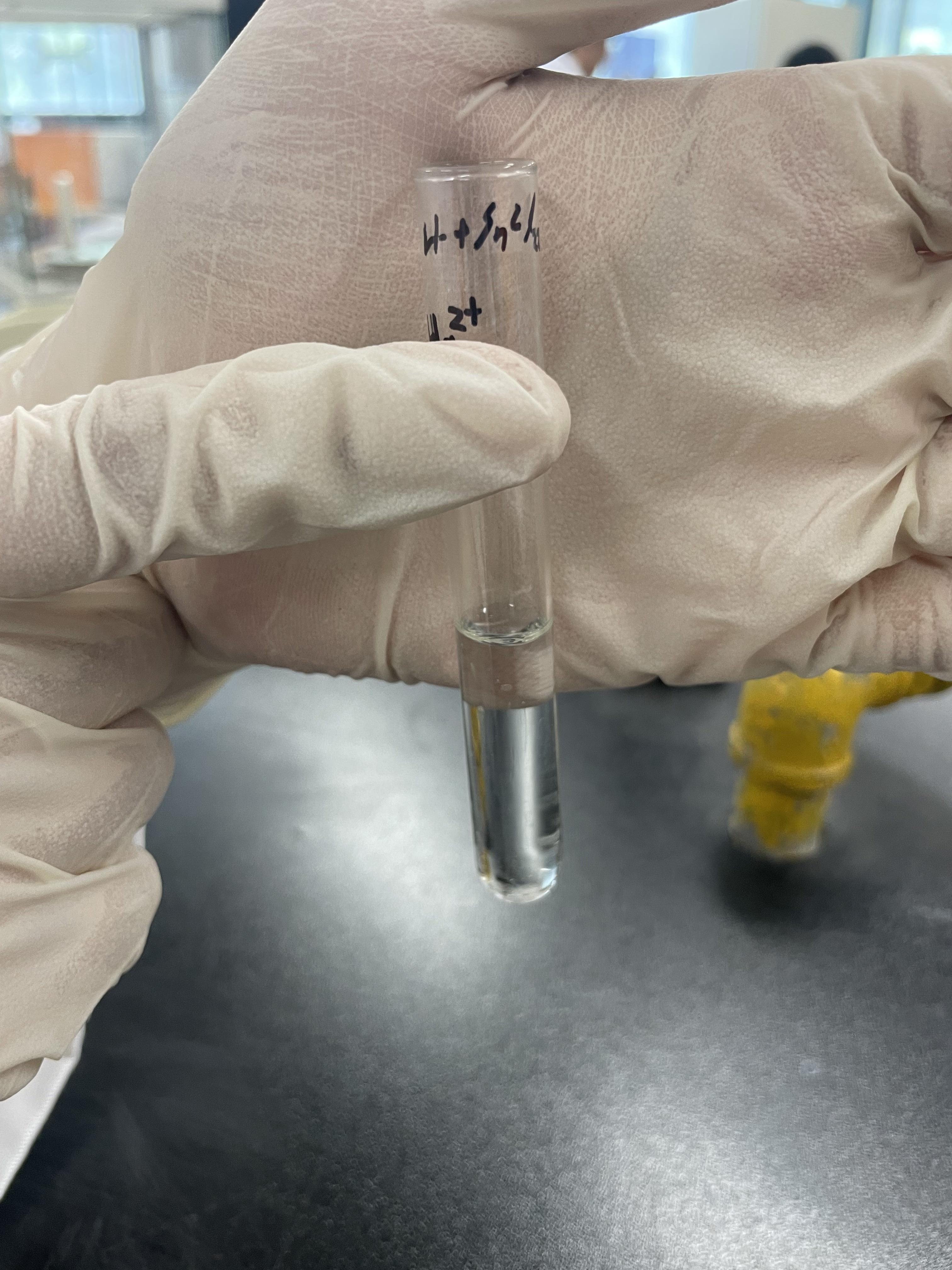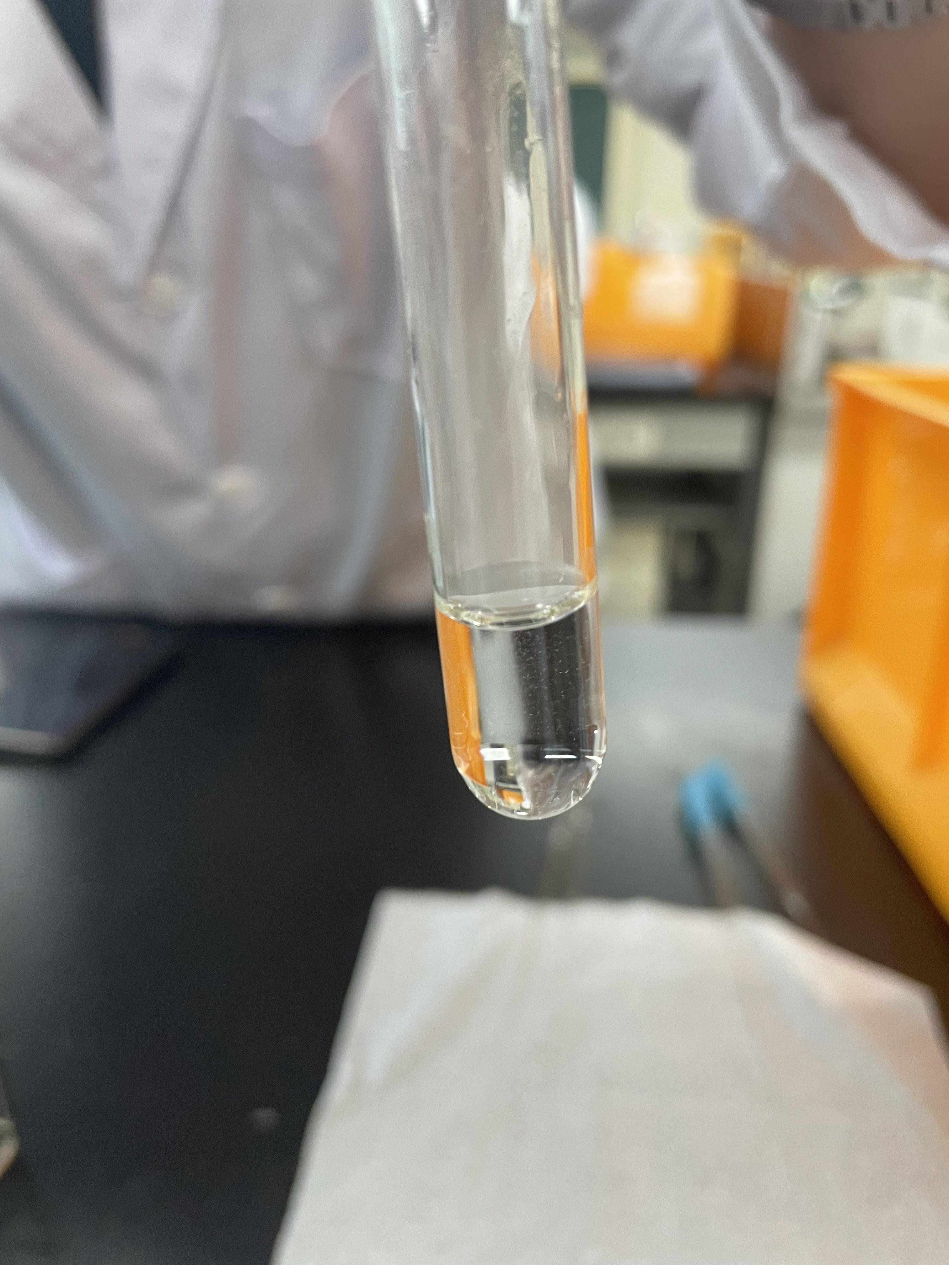 4 3번과정에서 얻은 결과물의 상층액과 침전을 분리 한 후 상층액에 3M HCl을 1ml 가한 후 침전을 확인한다.