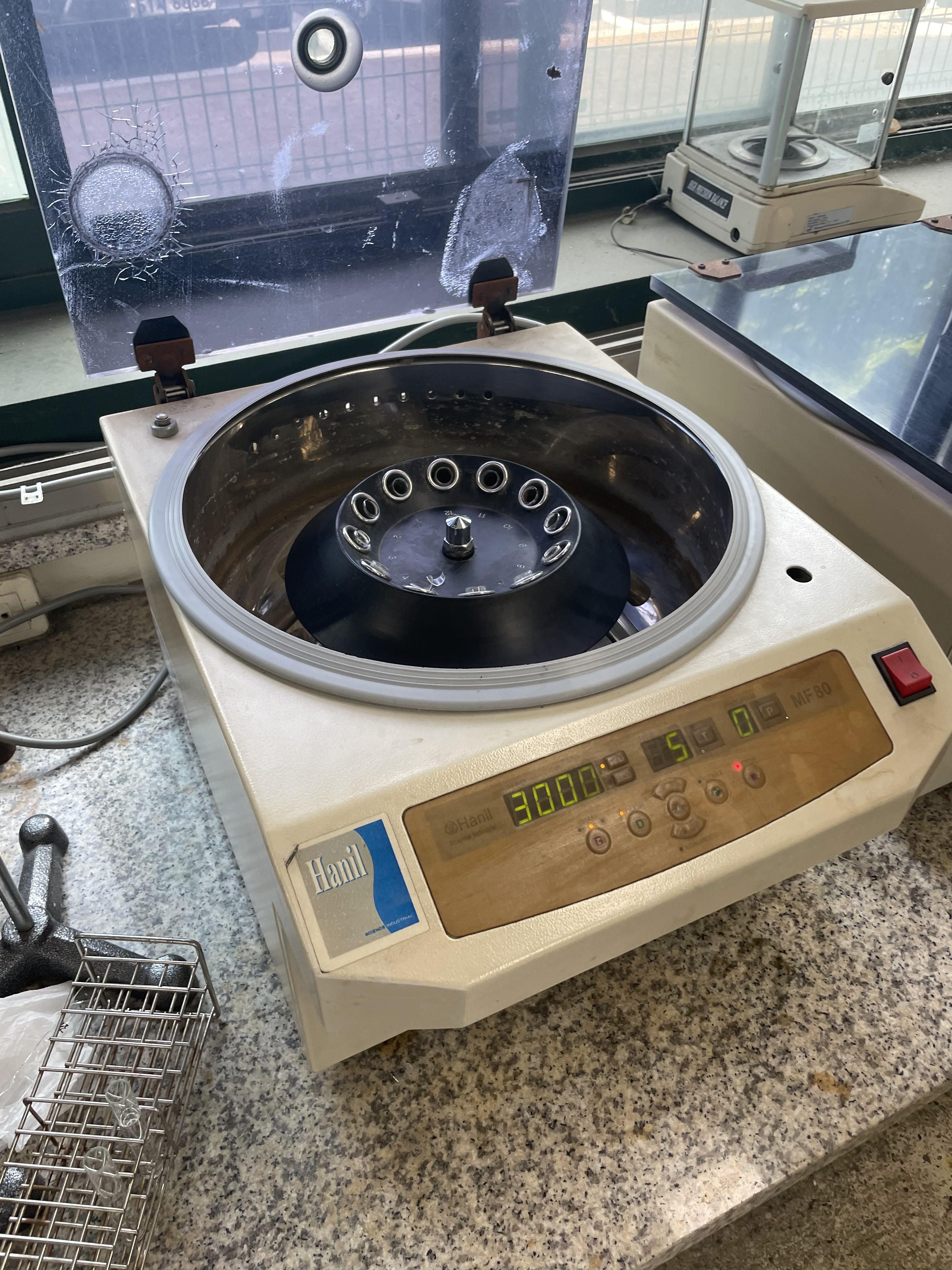 빨간 전원버튼을 누르고 원심분리시간(1분)을 확인한다. balance를 맞춘 후 (시료가 들어있는 시험관을 원심분리기에 넣고 반대 방향에도 같은 양의 다른 시료가 들어있는 시험관을 넣거나 물을 넣은 시험관을 넣어 균형을 맞추어야 한다.) start버튼을 누르고 삐~~이 소리가 들릴 때까지 기다린다. 뚜껑 옆에 은색 버튼을 누른 채 뚜껑을 연다.