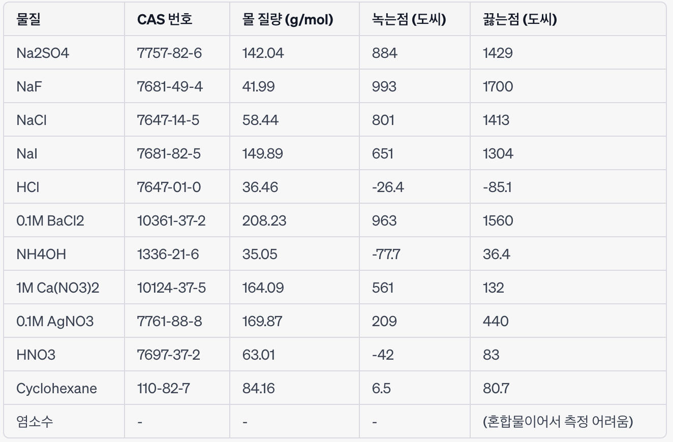 출처: 위키백과, msds검색으로 물질들 각각 검색후 조사, 요약