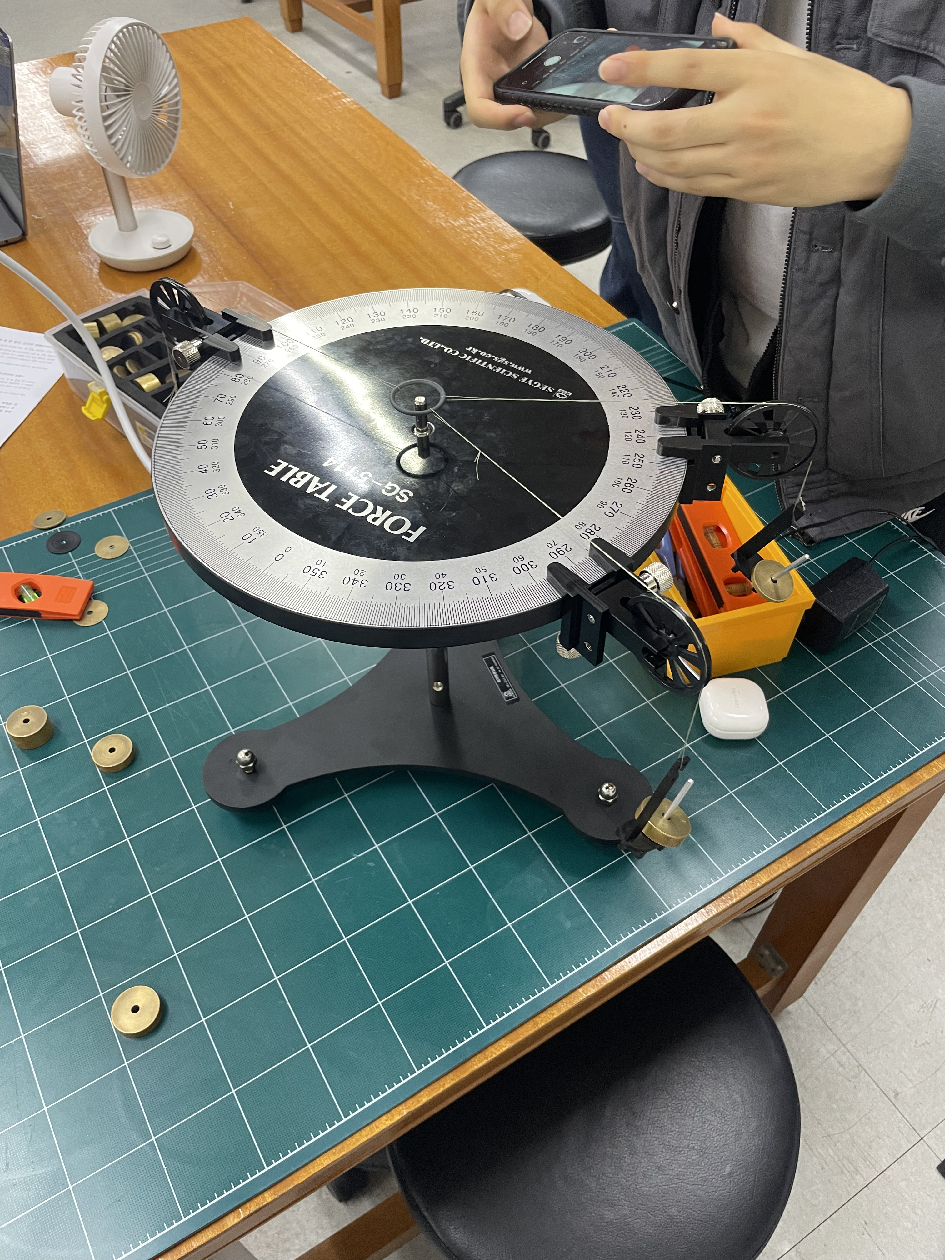 또한 원형각도기의 눈금 하나는 0.5도를 의미한다. 실의 두께가 눈금의 두께보다 두꺼워 이로 인해 최대 +-0.3도정도까지 차이가 날 수 있다고 본다.