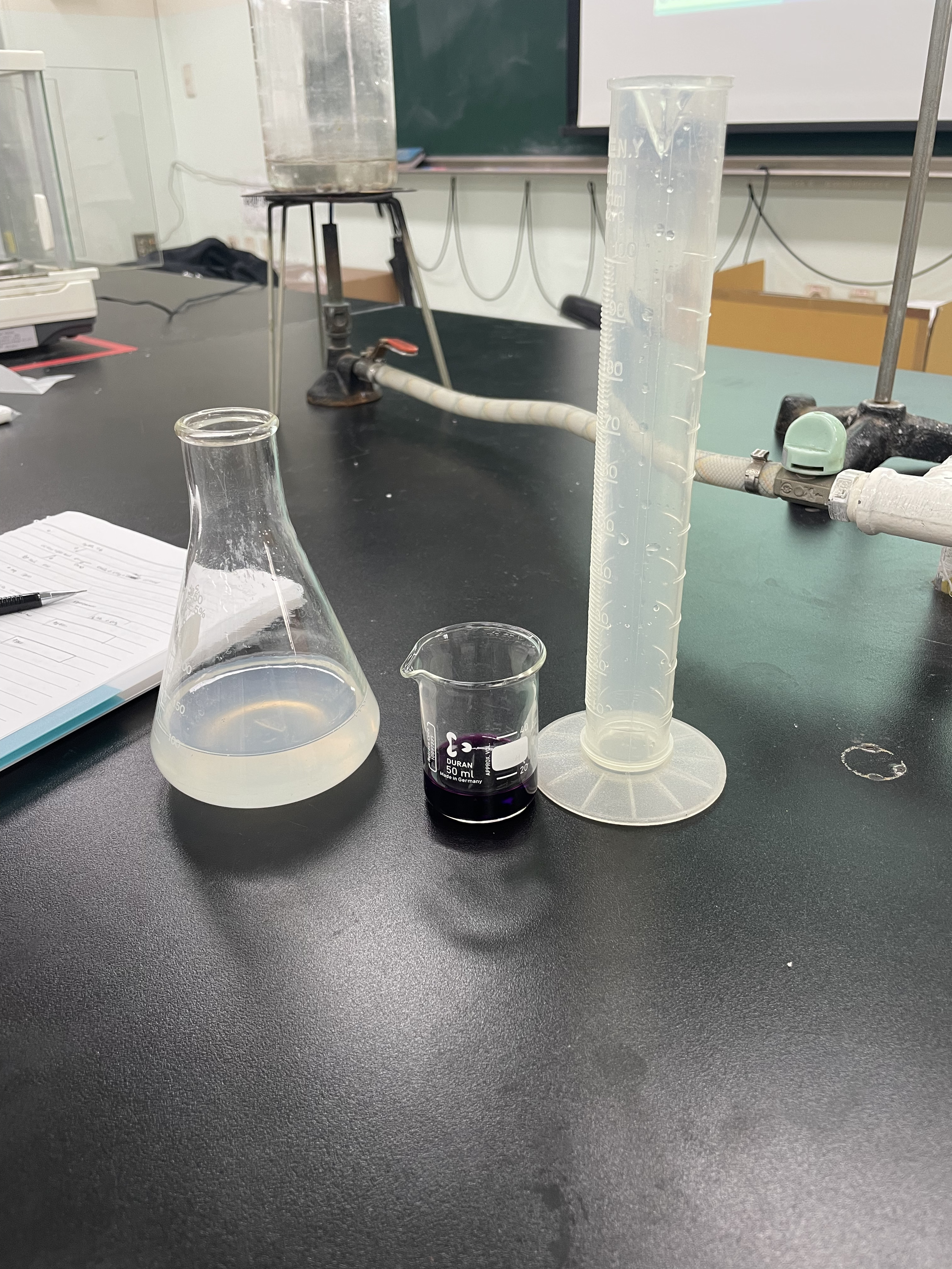• 기구 : 메스실린더, 삼각플라스크, 비커, 삼발이, 석면, 스탠드, 부피플라스크, 뷰렛