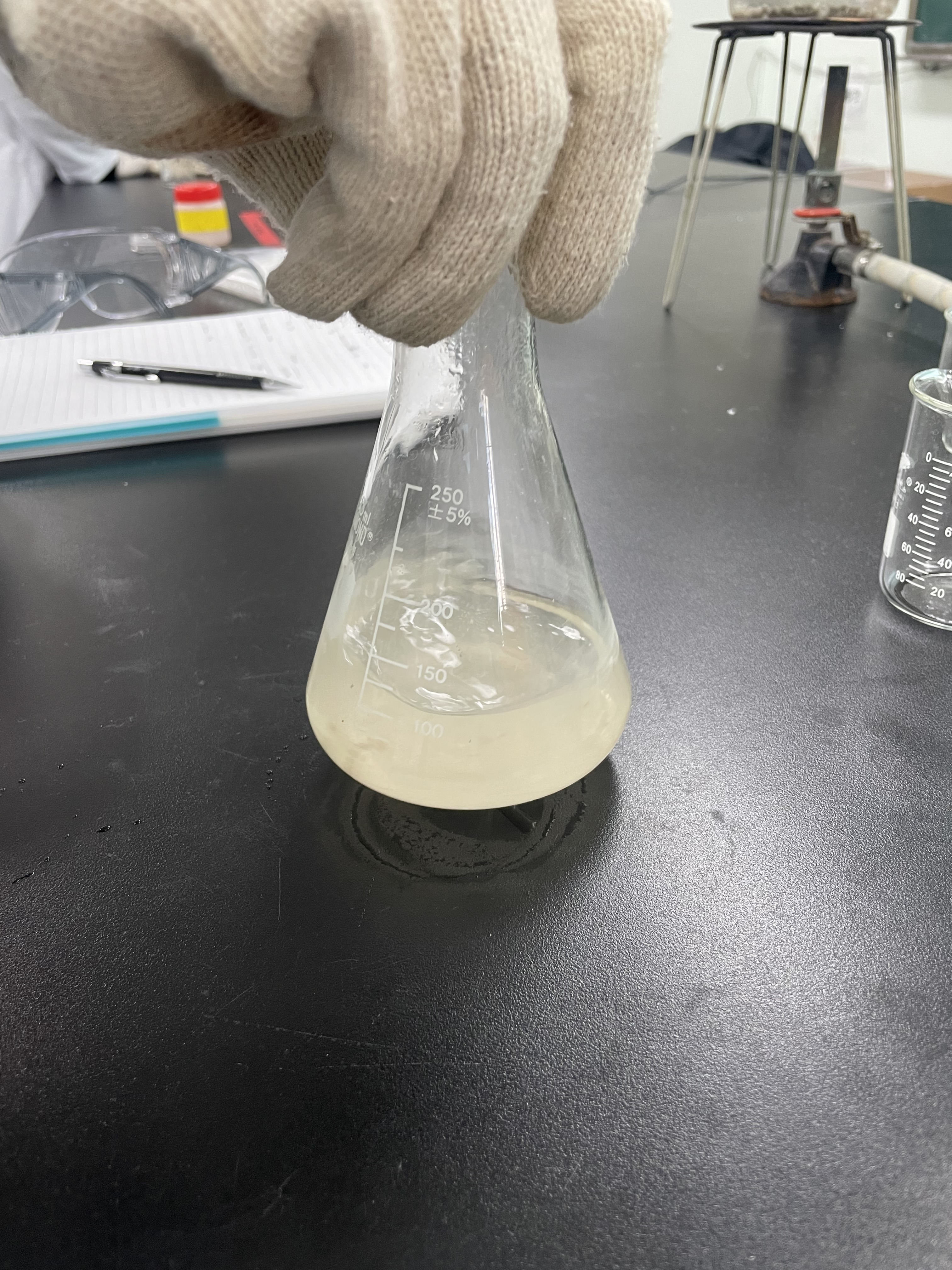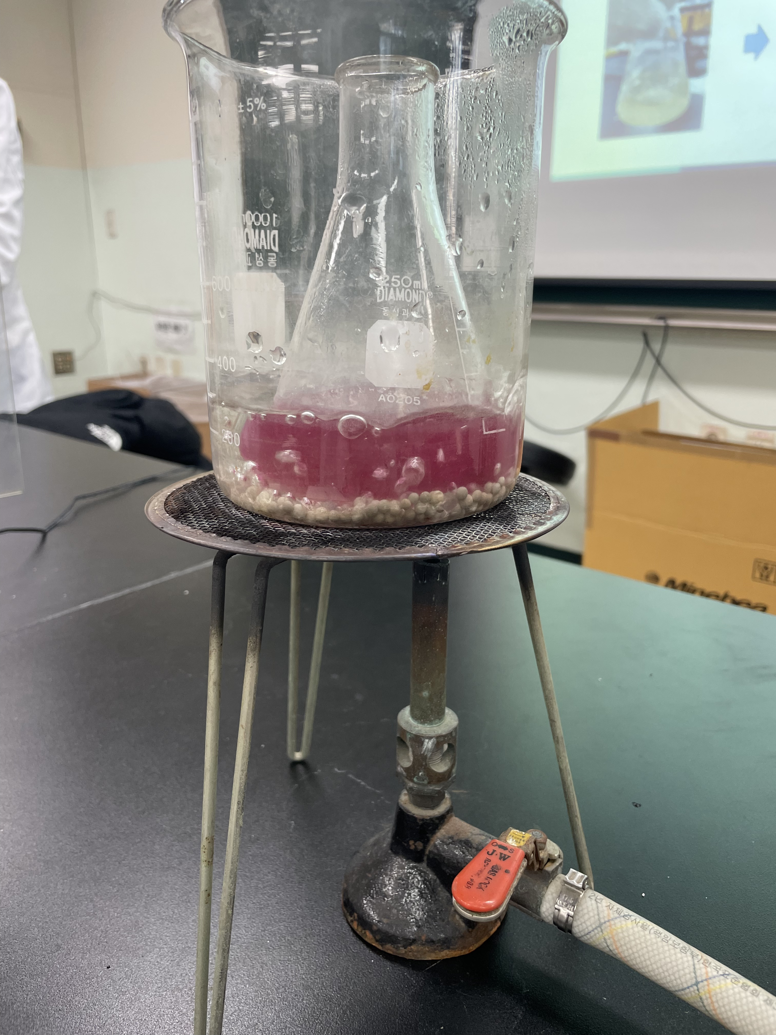 ⑥ ④번 비커에 ③번의 250 mL 삼각플라스크를 물중탕으로 20~30분간 가열한다.