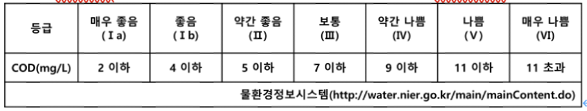 7-4. COD 계산값과 아래 주어진 정보를 이용하여 일감호의 오염도를 평가하시오.