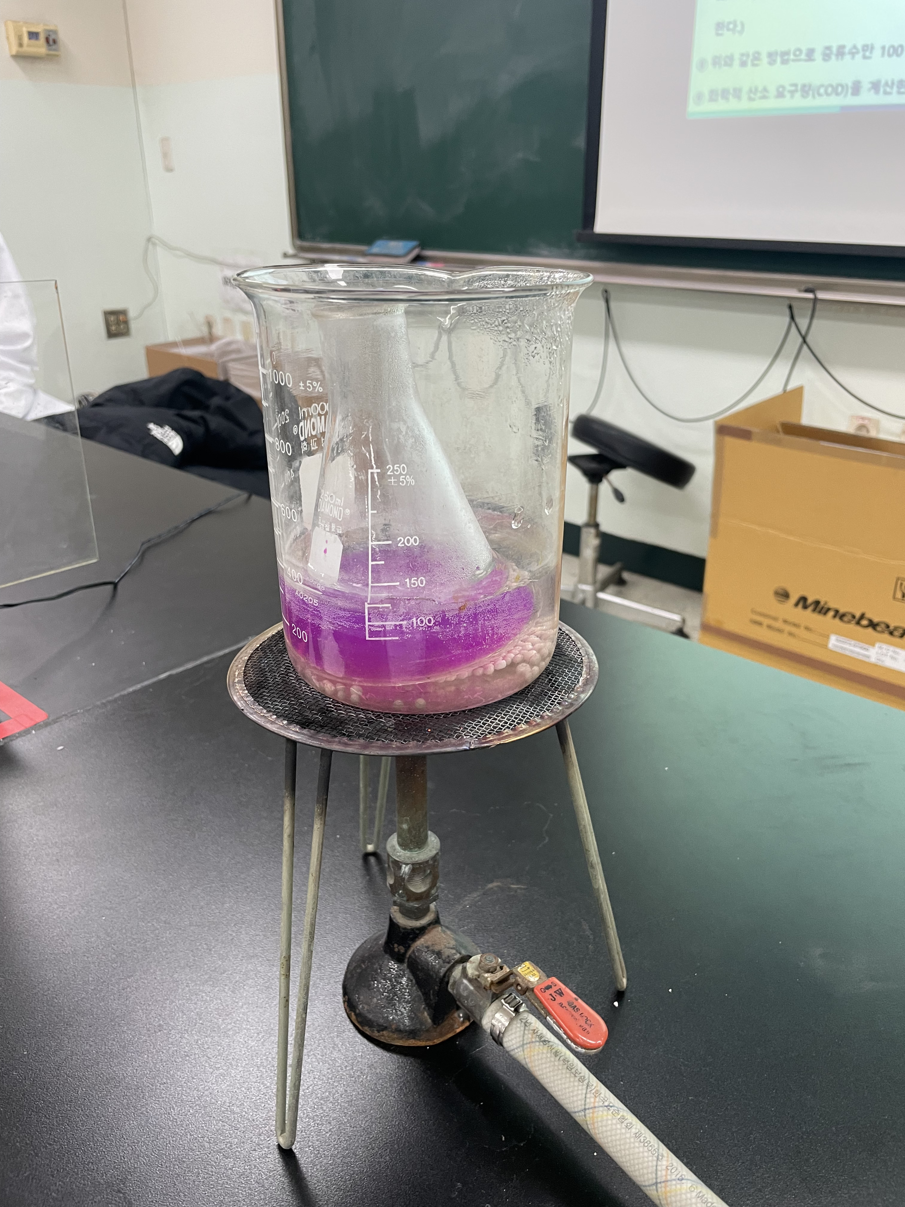 과망간산칼륨을 이용한 COD를 측정하여 일감호의 오염도를 알아본다.