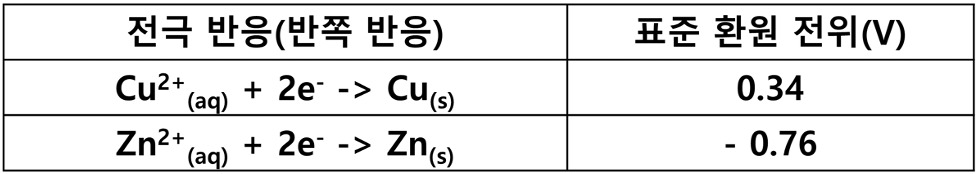 (E∘) = (+)극의 표준 환원 전위 - (-)극의 표준 환원 전위 = (+)극의 표준 환원 전위 + (-)극의 표준 산화 전위