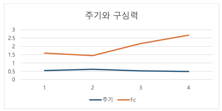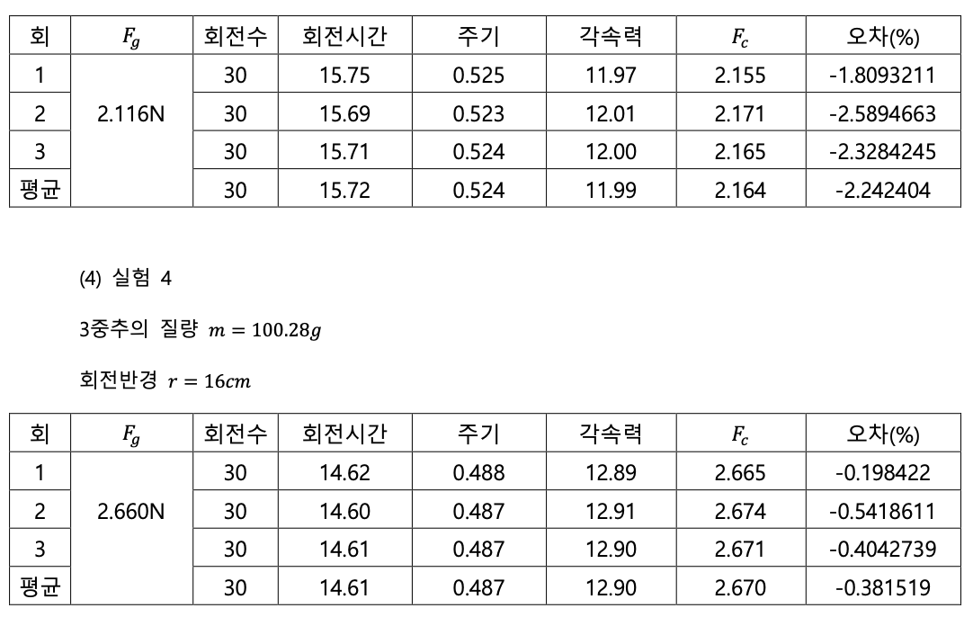 주기와 구심력은 음의 상관관계를 보였으며, 모든 실험에서 오차의 절댓값이 3%를 넘지 않았다.