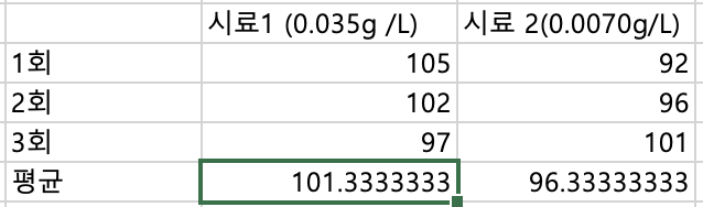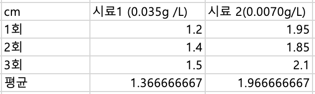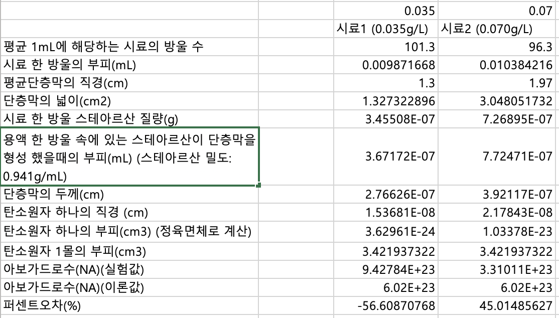 - 농도가 다른 스테아르산의 용액(0.070g/L)에 대하여 1)~6)의 실험을 반복한다.