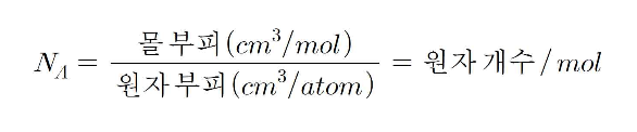아보가드로 수 만큼의 분자가 차지하는 부피는 바로 1몰의 부피이므로 아보가드로수는 다 음 계산으로부터 얻을 수 있다.