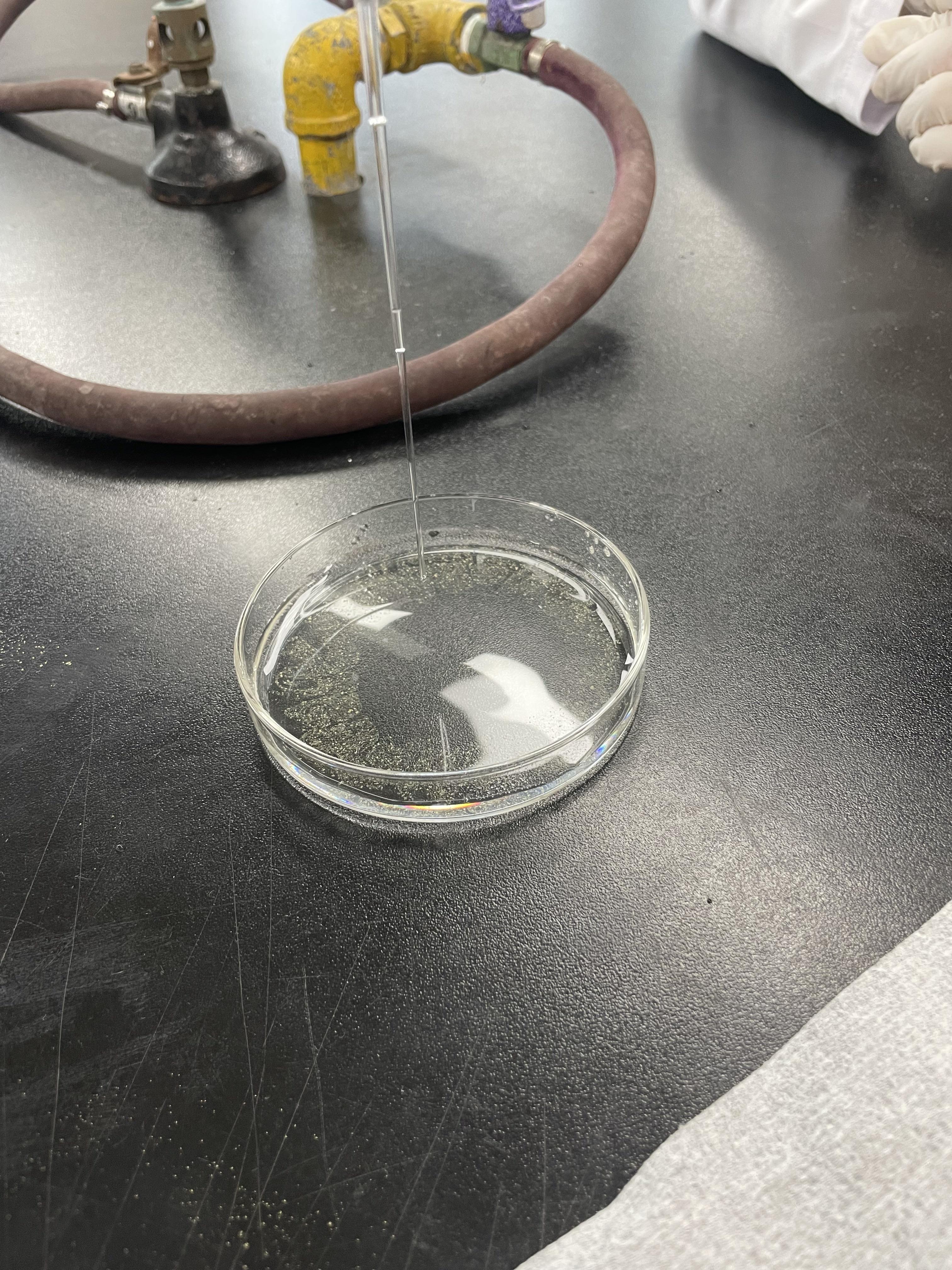 - 페트리 접시에 물을 충분히 채우고, 수면이 잔잔해 질 때까지 기다린다.